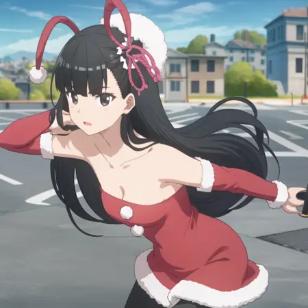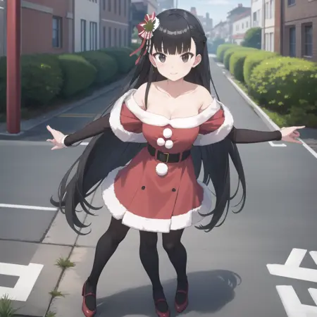 トリガーワード: bofuri-kasumi, loliform, kimono, japanese clothes, wooldress, wooldress hat, santa costume, secondoutfit, sarashi