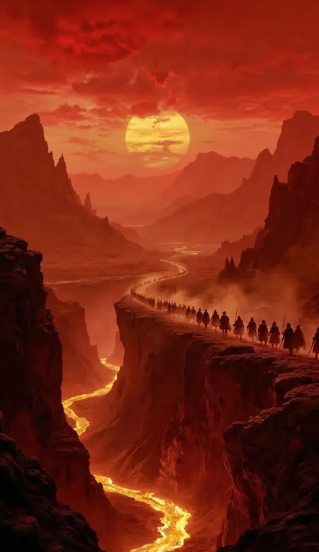 一张引人注目的高级时尚特写人像,一位女子身着黑色尼卡布面纱,背景为鲜明的深红色。画面采用戏剧性打光,突出布料质感与女子锐利的眼神。