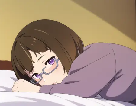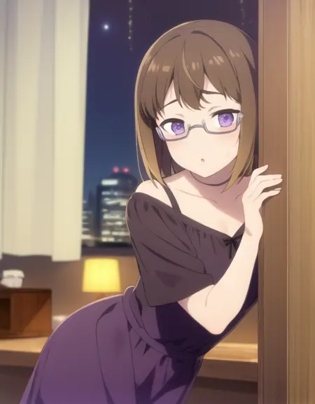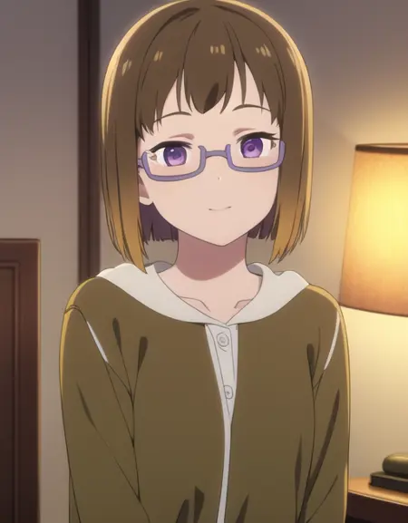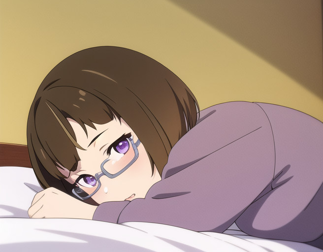 附加标签(推荐):棕色头发,紫色眼睛,短发,眼镜