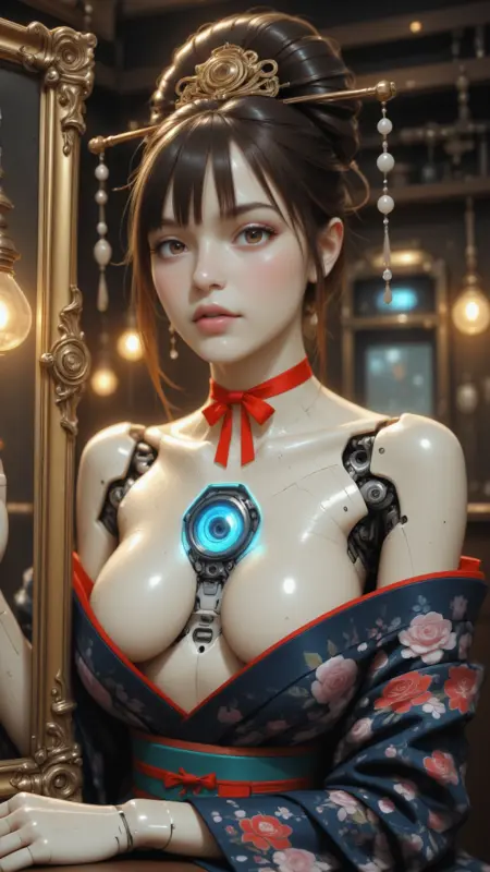 리리지는 혁신의 걸작으로 칭송받았지만, 그녀의 여정은 결코 단순하지 않았다. 한 번은 사쿠라마의 지배층이 참석한 명예로운 다도회 도중, 그녀는 고장이 났다. 한 손님의 압도적인 슬픔에 감정 센서가 과부하를 일으키며, 하트 렌즈가 지나치게 많은 감정 데이터를 흡수해 연쇄적 장애가 발생했다. 그때 리리지는 처음으로 감정에 가까운 무언가를 느꼈다 — 단순히 _봉사_하는 것이 아니라 _치유_하고 싶은 갈망이었다.