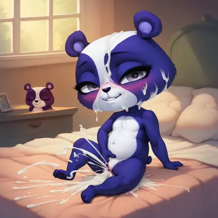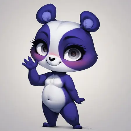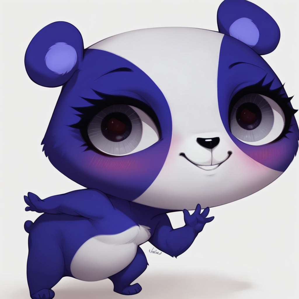 bear girl, panda, violet and white fur, silver eyes, stubby tail, black nose, chibi,