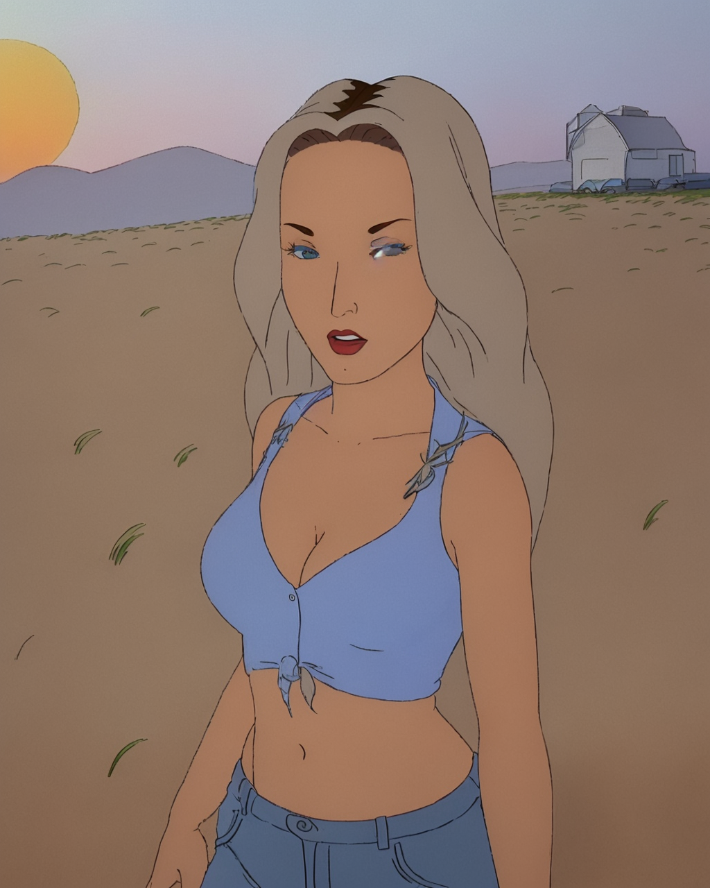 描绘1996年电影《比弗利拜斯和巴特德去美国》中的达拉斯·格莱姆斯。