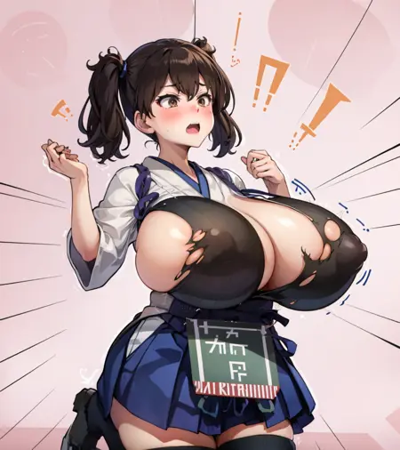 役立つタグ:{size}の胸、見下ろし、肌の凹み、破裂する胸、きつい服、小さすぎる服、動き線、自分の胸をつかむ
