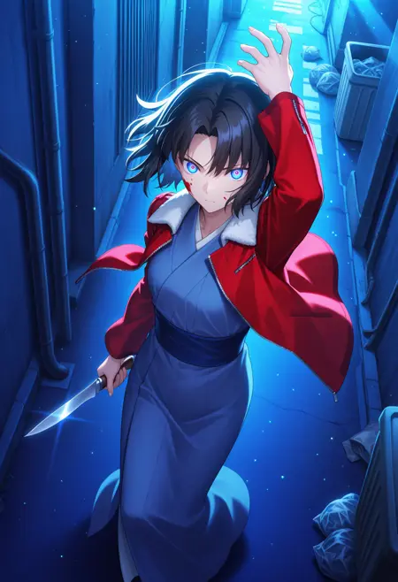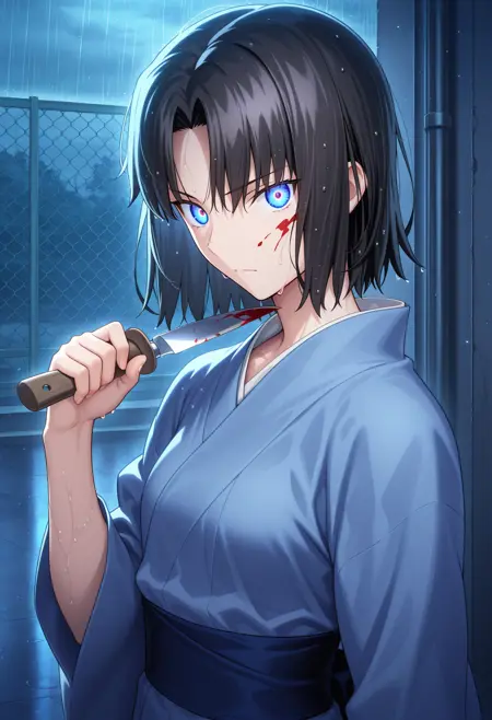 About "holding knife": I don't tag the knife of Shiki, and please put dual wielding and katana into negative prompt.