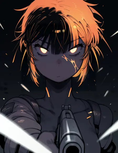 karasuchan1204, halftone, masterpiece, best quality, stylized, bold lines, dynamic lineart, sketchy lines, cel shading, textured shading, vibrant colors, strong saturation, dramatic lighting, expressive eyes,