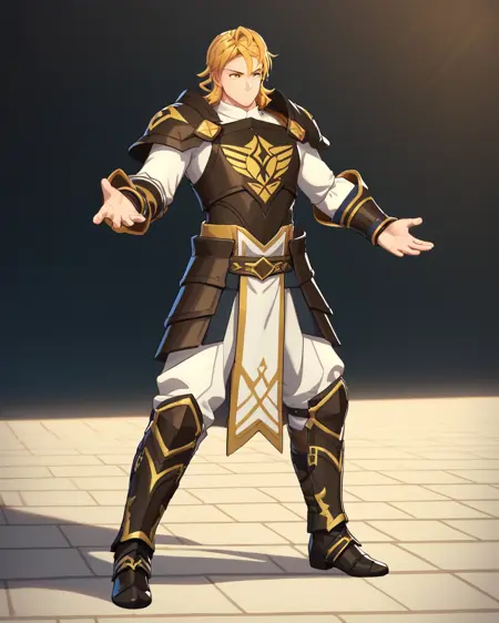 For his standard outfit you can use "vest" and "ascot", for his casual outfit "casual clothing" and "hoodie".