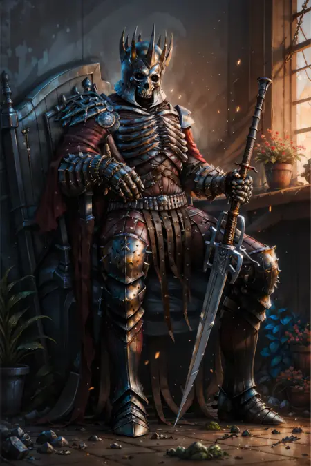 여기저기 약간의 결함이 존재하며, 저는 일반적으로 이를 그대로 두는 편입니다. (예시에서는 어떤 inpainting도 사용하지 않습니다.) 대부분의 경우 손은 더 나은 프롬프트와 네거티브 임베딩으로 수정할 수 있지만, 무기의 경우 오늘날 대부분의 모델에서도 여전히 품질이 좋지 않은 편입니다.
