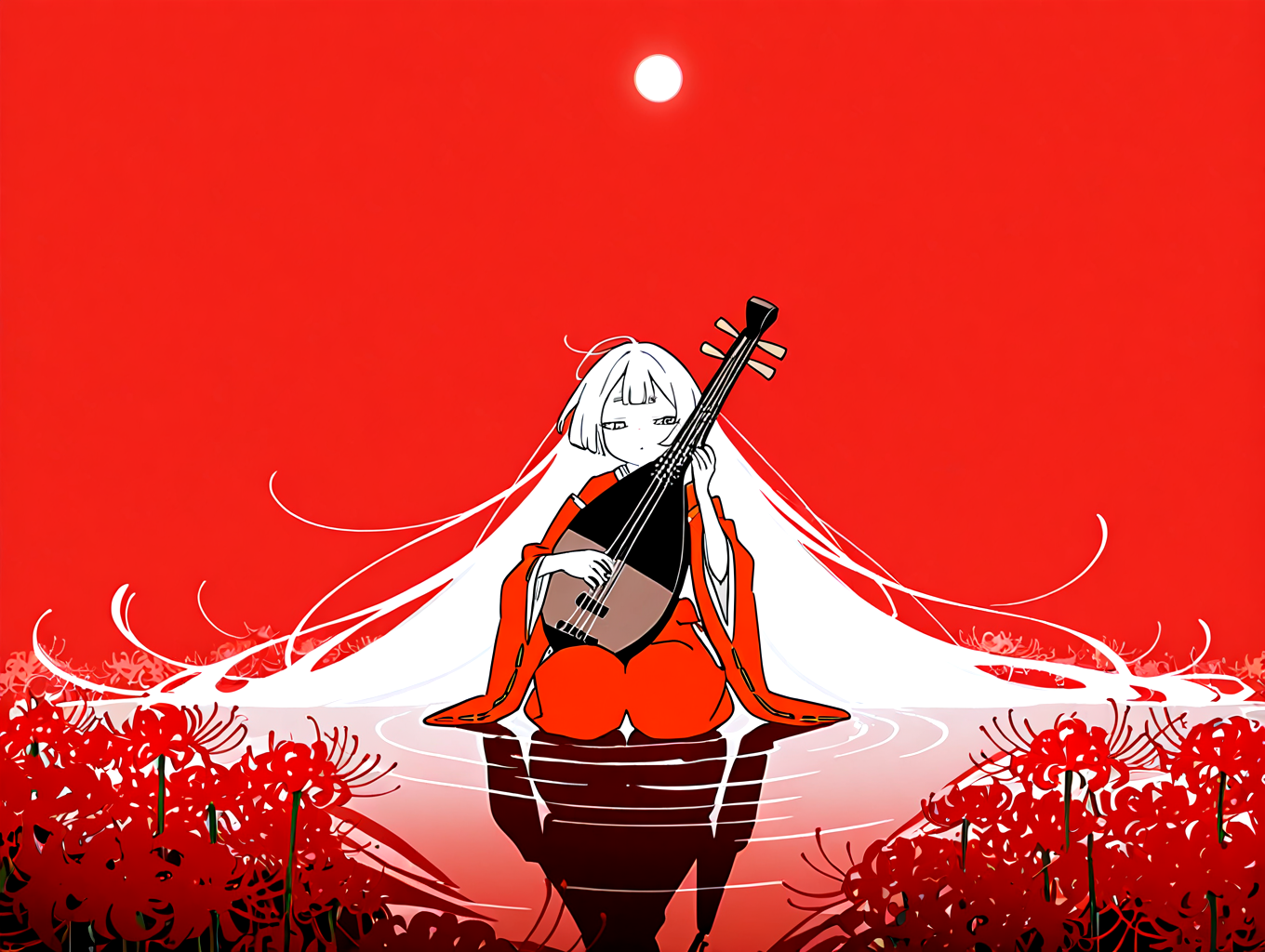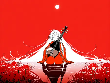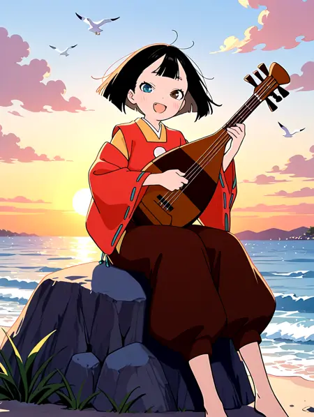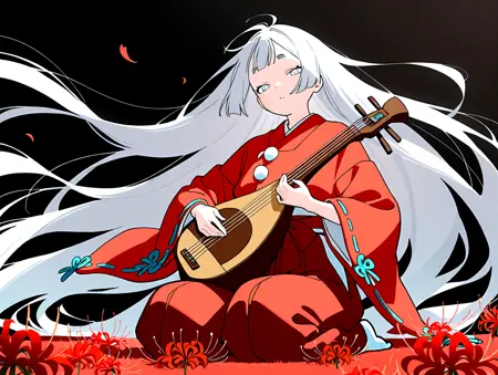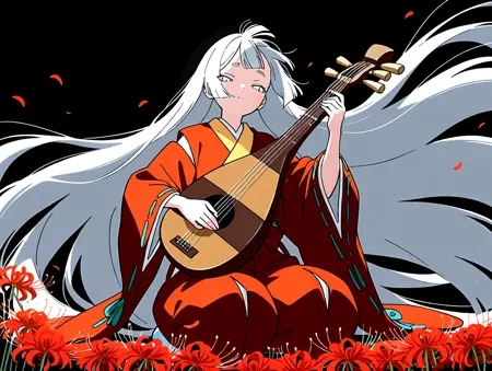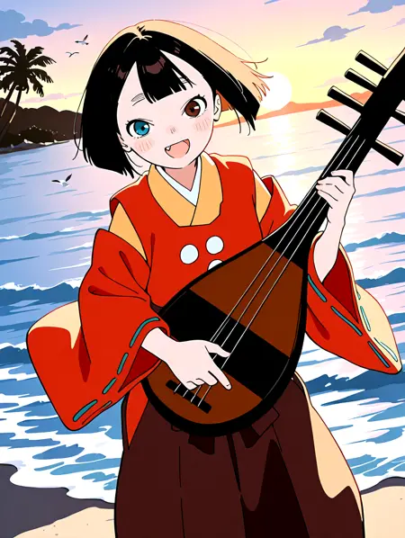The character's heterochromatic eyes and the position of the white fur ball on his clothes are unstable. In addition, the biwa part may not be specially trained separately, but is it overlapping with the lute? It is often mixed with guitars and other instruments.