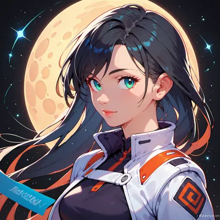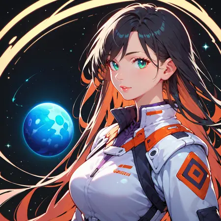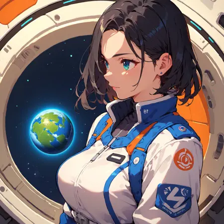 中格式提示词:女性,外太空,侧面视角,太空服,星球