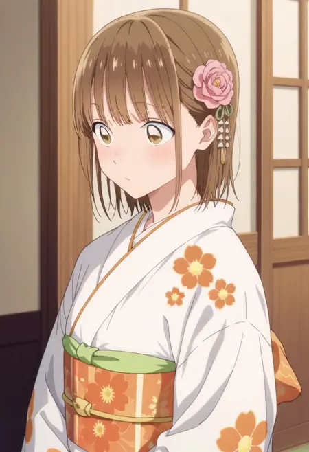 LoRA 스케일: 0.7-0.9트리거 단어: kano chinatsu, 갈색 눈, 갈색 머리, 단발