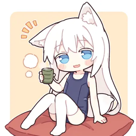 A fox/dog girl that only wears school swimsuit as her underwear.