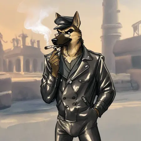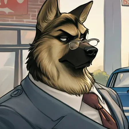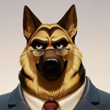Sm1rn0v, Smirnov, anthro German Shepherd, anthro dog, male furry, dog ears, erect ears, tan fur, two tone fur, brown markings, black nose, glasses, pince-nez, black eyes, muscular,