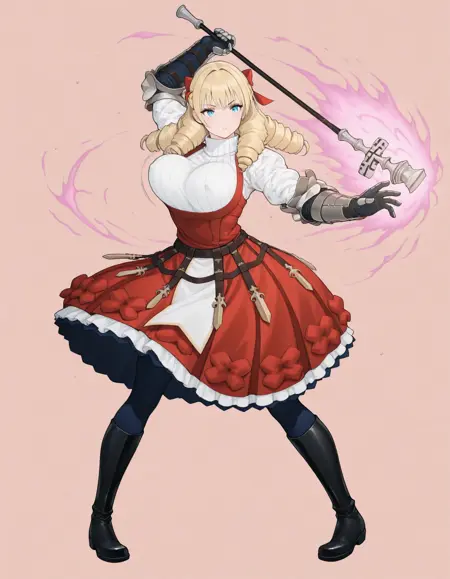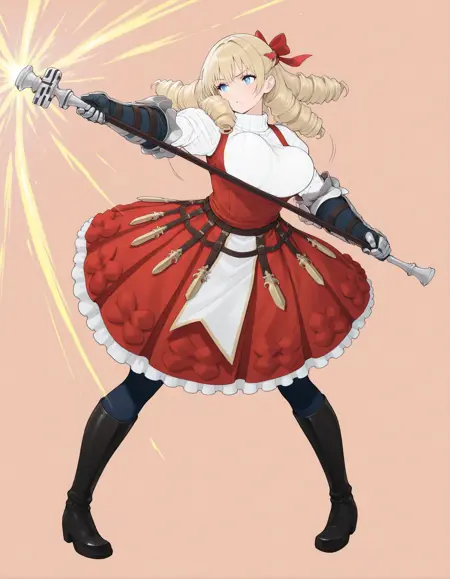 若需要赋予武器,由于常会生成多个武器,建议明确指定“单一武器”以获得稳定效果。(例如:指定“holding a weapon”,或在negative中加入“multiple weapon”等)