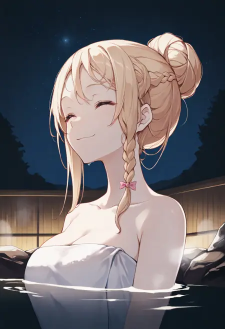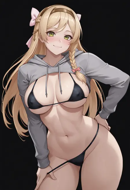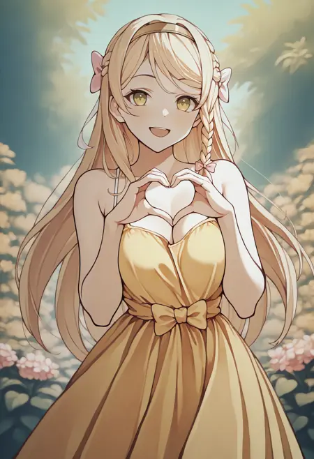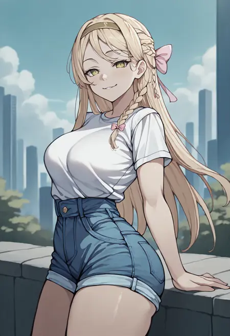 KlaudiaValentz, long hair, side braid, hairband, hair bow, white bow, pink bow