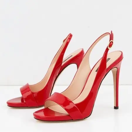발가락 부분이 4인치 열려 있는 스트랩이 없는 하이힐을 제공합니다.