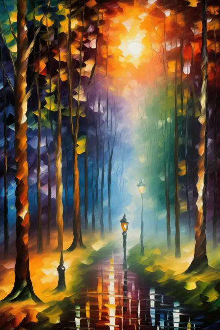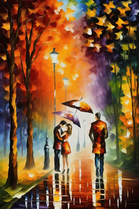 アフレモフの主題は、静かな公園の風景や魅力的なヨーロッパの街並みから、活気ある都市風景やロマンチックな海辺の景色まで多岐にわたります。彼の絵画には夢のような質感があり、光と色彩の交錯が魔法のような感覚とノスタルジーを呼び起こします。