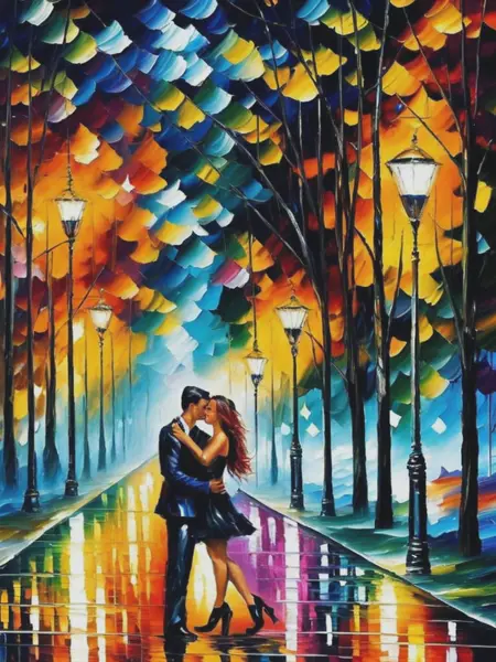 Afremov's subjects ranged from tranquil park scenes and charming European streets to bustling cityscapes and romantic seascapes. His paintings had a dreamlike quality, with the interplay of light and color creating a sense of enchantment and nostalgia.