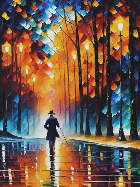 Afremov's artworks are characterized by their bold use of color, loose brushwork, and a sense of atmospheric beauty. His paintings often depict cityscapes, landscapes, and rainy scenes, capturing the essence of a moment and evoking an emotional response from viewers.