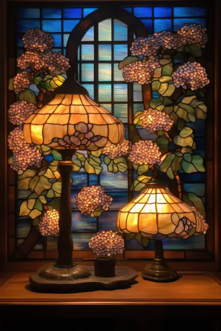 蒂芙尼最著名的作品是其精美的彩绘玻璃窗和灯具。他通过实验新技术与新材料,革新了彩绘玻璃艺术,创作出色彩鲜艳、细节繁复的设计,充分展现其对色彩与光线的精湛掌控。他专利发明的乳光玻璃,呈现出独特的虹彩效果,成为其作品的标志性特征。