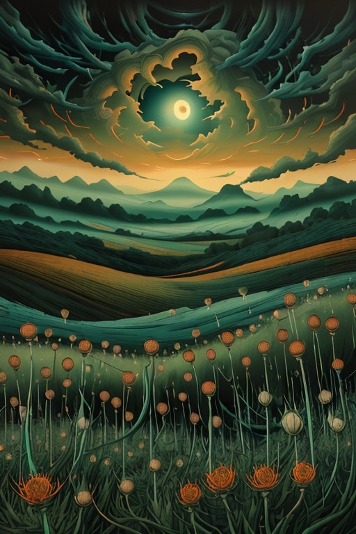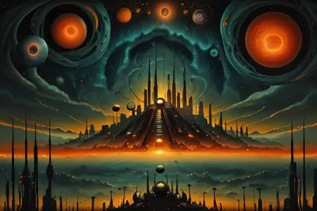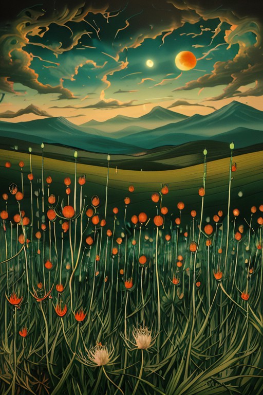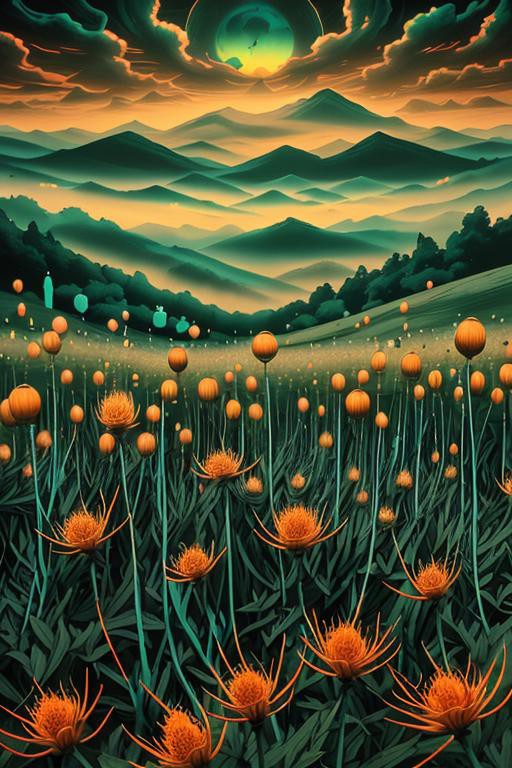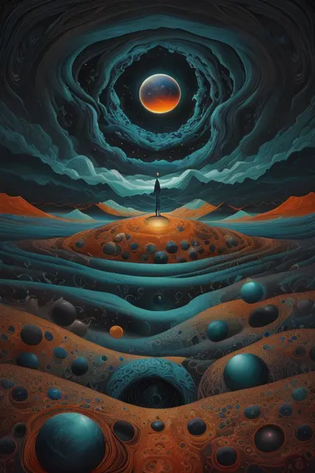 My first creation of a LoRA using images that i originally created in MidJourney. The original training images show you what I wanted to achieve which is a psychedelic surreal world.