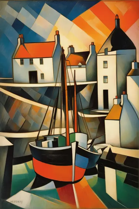 Feininger's works often featured architectural and industrial subjects, reflecting his fascination with urban landscapes and geometric forms. His paintings and prints showcased a keen attention to detail, as well as a sense of order and precision.