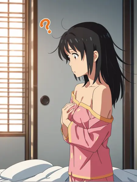 三葉,凌乱头发,露肩,吊带衫,睡衣