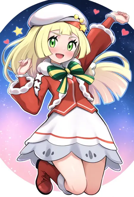 | 训练词汇 | holillie, lillie_\(pokemon\), green_eyes, blonde_hair, long_hair, bangs, white_headwear, star_\(symbol\), long_sleeves, official_alternate_costume, bow, jacket, red_jacket, fur_trim, skirt, white_skirt, long_skirt, knees, boots, fur_trimmed_boots, red_footwear,已复制! |