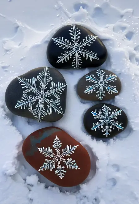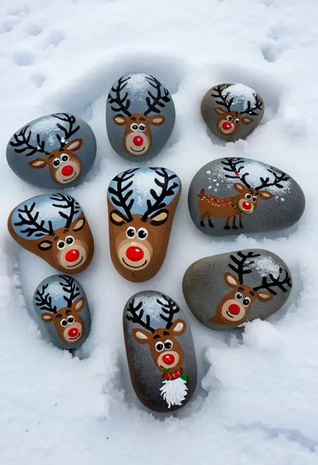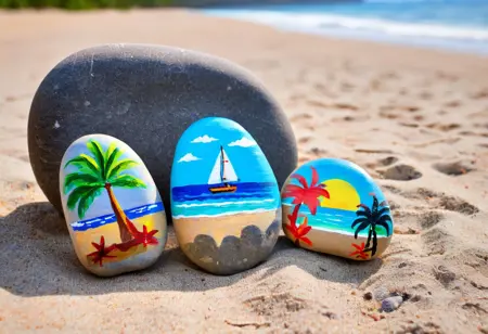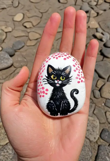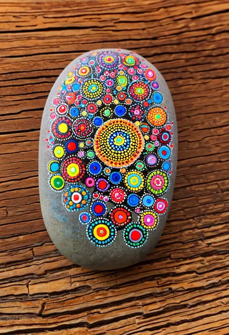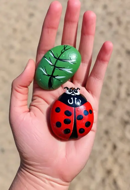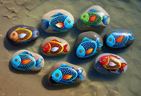 创建一张逼真的特写图片,展示一块或多块如野外可找到的快乐石头般精美绘制的石头。