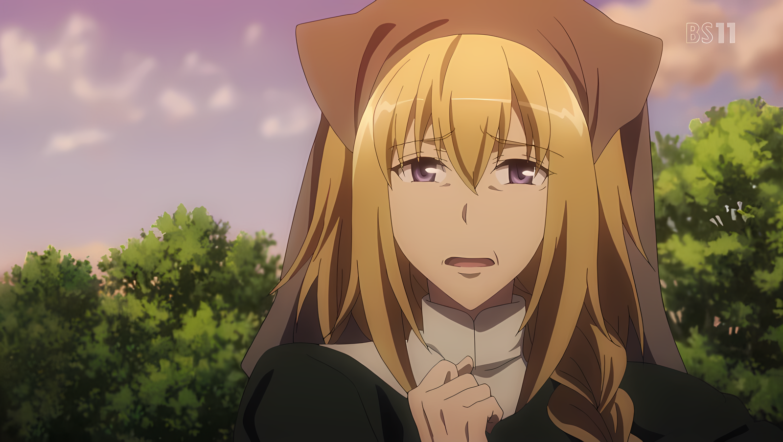 isabelle_romee_(fate), Isabelle Romee (fate), blonde hair, purple eyes, fine lines under eyes, mature female, milf, flabby stomach, tareme,