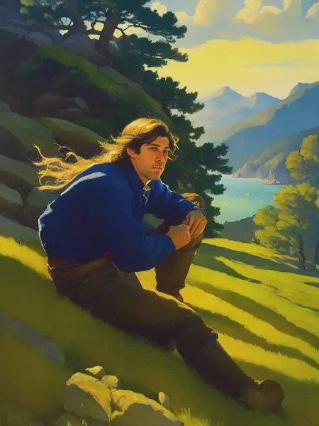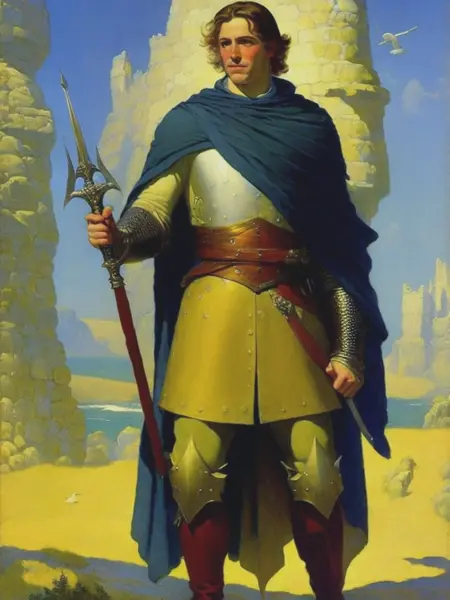 Wyeth's art style was characterized by its vivid colors, bold brushwork, and dramatic compositions. He had a talent for capturing action and storytelling through his illustrations, bringing characters and narratives to life. His subjects ranged from historical and adventure themes to landscapes and portraits.