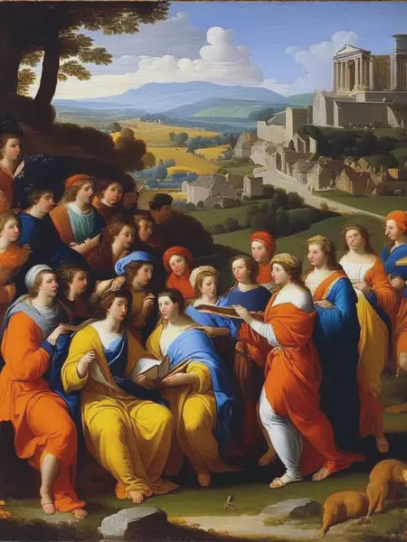 His paintings exhibit a sense of order and clarity, with a focus on rationality and intellectual engagement. Poussin's use of light and color was restrained, emphasizing a sense of equilibrium and creating a sense of timeless beauty.