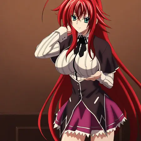 | トレーニングワード | Rias gremory, Red Crimson hair,voluptuous body, beautiful skin,hair reaches down to her thighs with a single hair strand, ahoge,loose bangs covering her forehead and side bangs framing her face,white long-sleeved, button-down shirt (short sleeves for spring/summer), with a black ribbon on her shirt collar worn under a black shoulder cape and a matching button-down corset, a magenta skirt with white accents, and brown dress shoes over white crew-length socksコピーしました! |