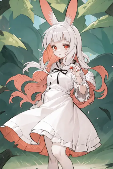 외모 태그: 토끼 귀, 흰 머리, 흰 드레스