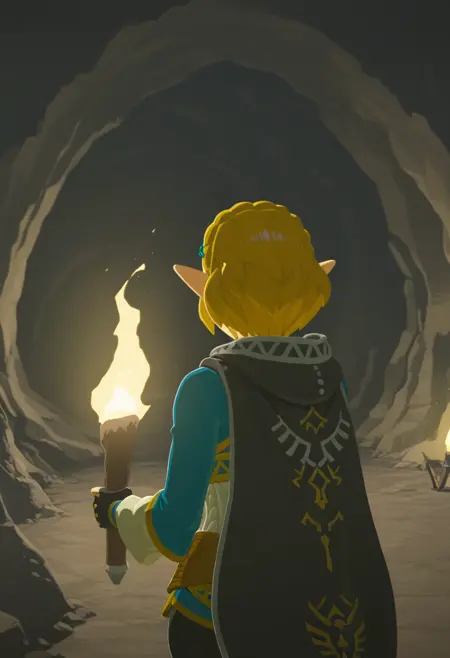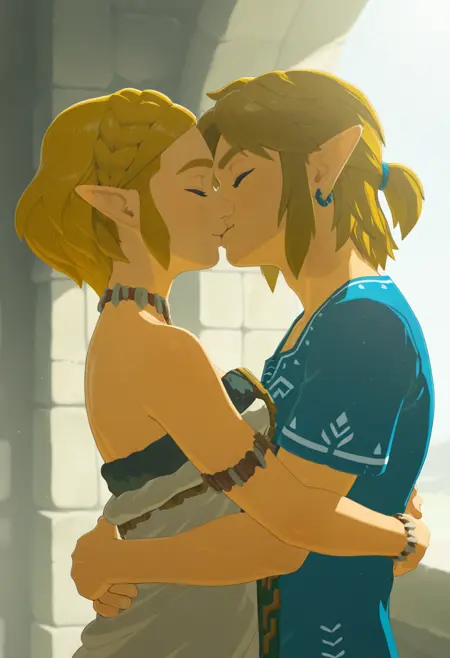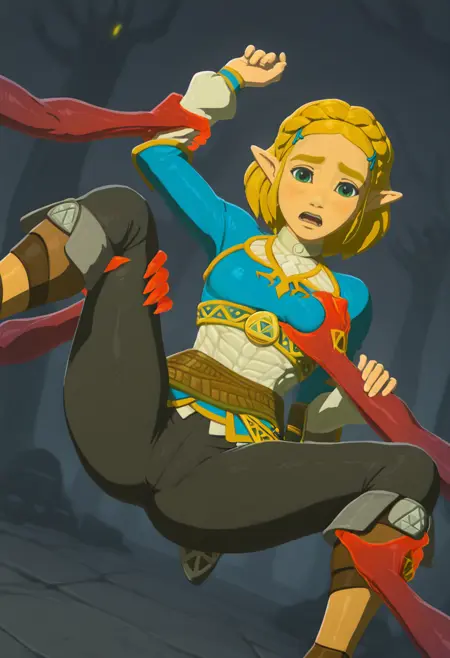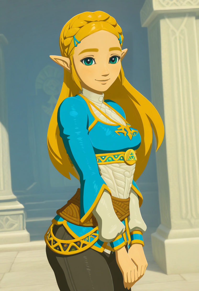 1girl,塞尔达公主,金发,尖耳,BOTW,长发,发饰,蓝衬衫