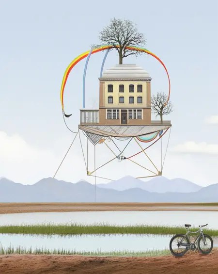 マティアス・ユングの吊り下げられたコラージュ建築。