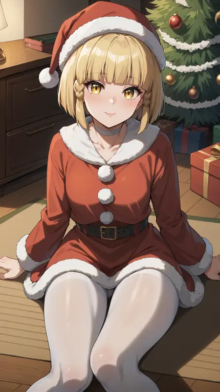 short hair, blonde hair, braids, blunt bangs, yellow eyes, white choker, blue dress, white dress, multicolored dress, long dress, wide sleeves