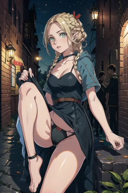 I didn't burned in her outfit, so if you want to bring her robe just prompt 'robe', also don't forget about 'dmarci' keyword