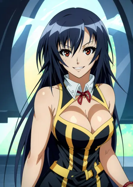 Medaka Kurokami, 1girl, solo, Black hair, torn clothes, angry, very long hair, red eyes