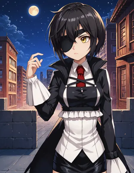 魔法装扮: pmmmkurekirika,眼罩,单眼遮盖,白衬衫,红领带,黑色褶边夹克,黑色袖子,袖子超过手指,黑色铅笔裙,白色过膝袜