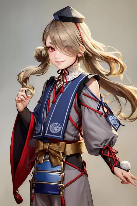 Default Outfit: tokin hat, chin strap, japanese clothes, japanese armor