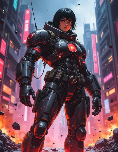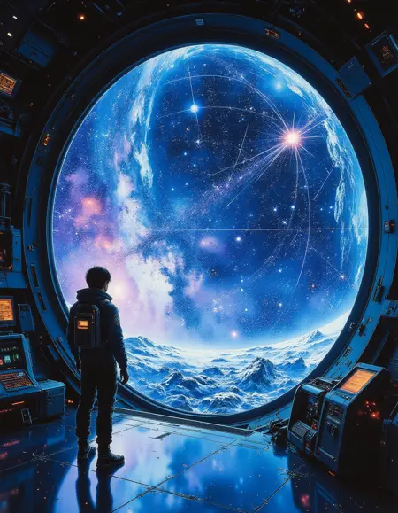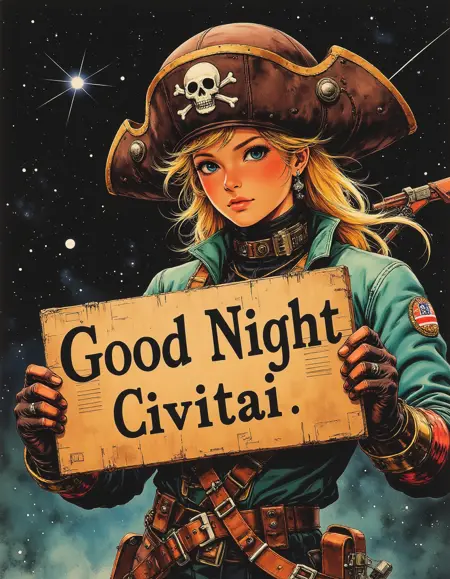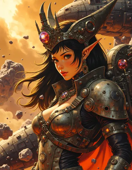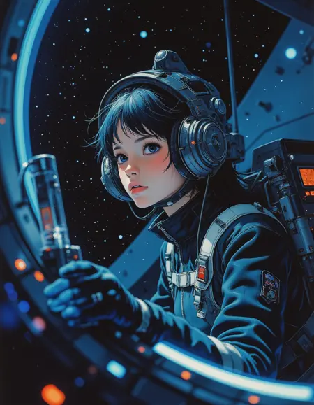 「Space Anime」は、未来志向のSF的美観とアニメ特有の特徴を融合させたスタイルです。細密な線画を特徴とし、キャラクターの顔の表情や衣装を強調し、オレンジと白を主に用いた鮮やかなカラーパレットで宇宙服を描いています。背景には、惑星、星々、宇宙船などの宇宙的要素が豊かに描かれ、鮮明で絵画的ともいえるスタイルで表現されています。このスタイルは、伝統的なアニメイラストレーション技法とSF要素を組み合わせ、視覚的に圧倒的で没入感のある未来の世界を生み出します。