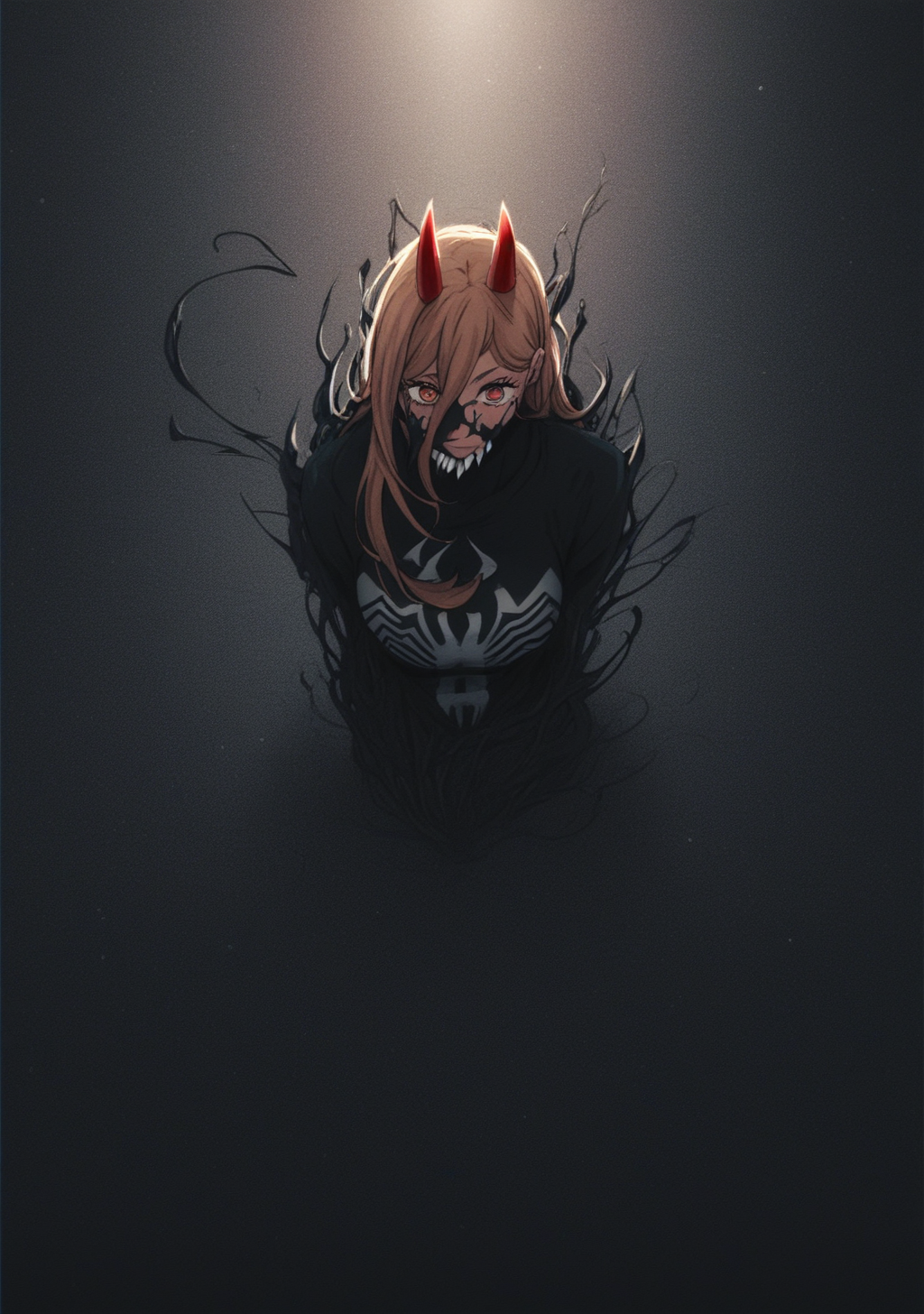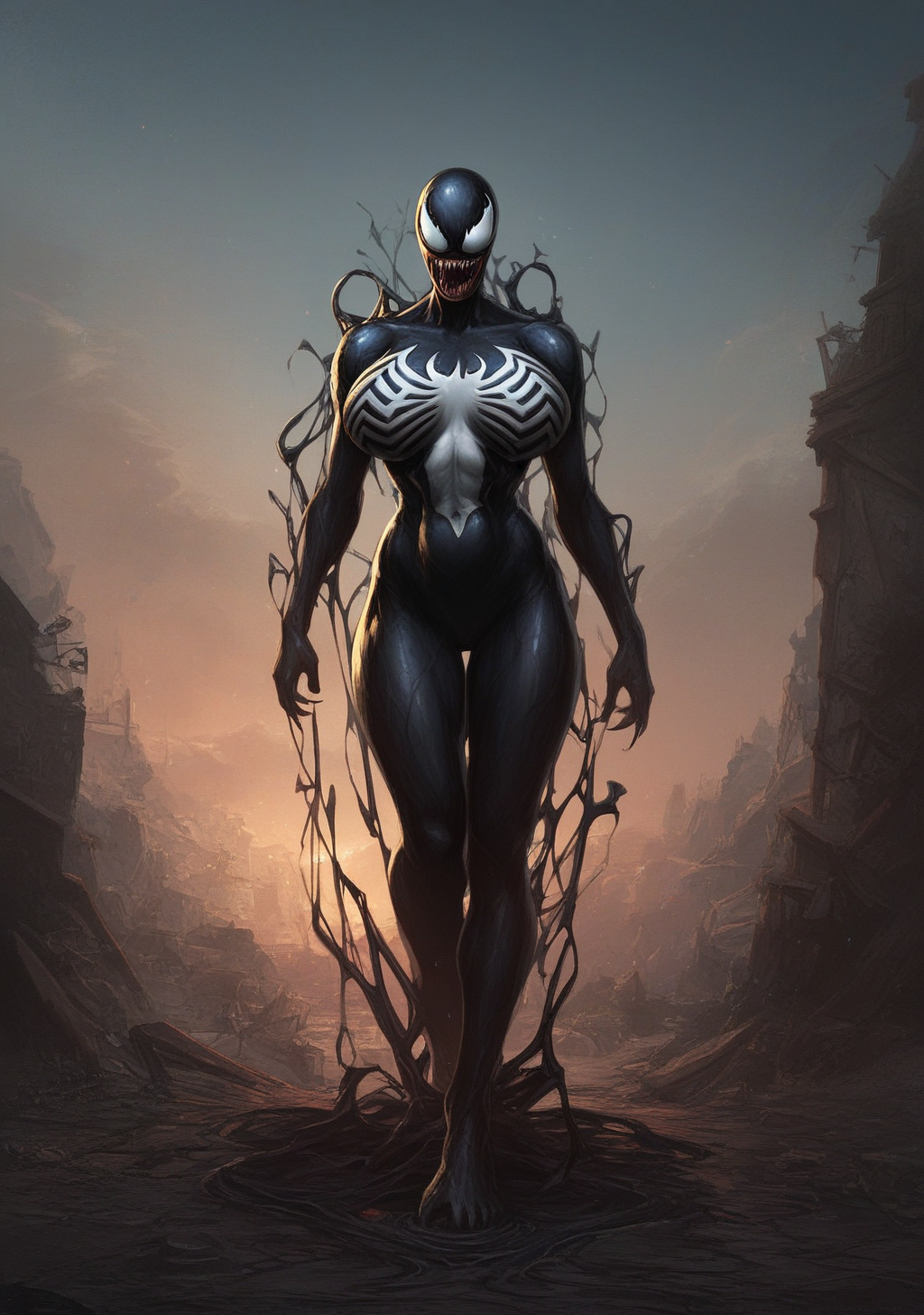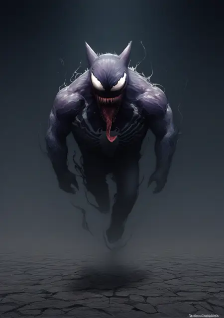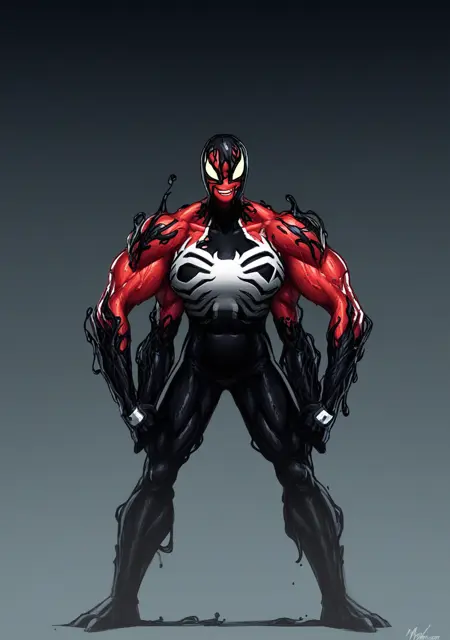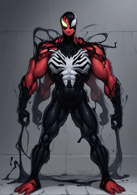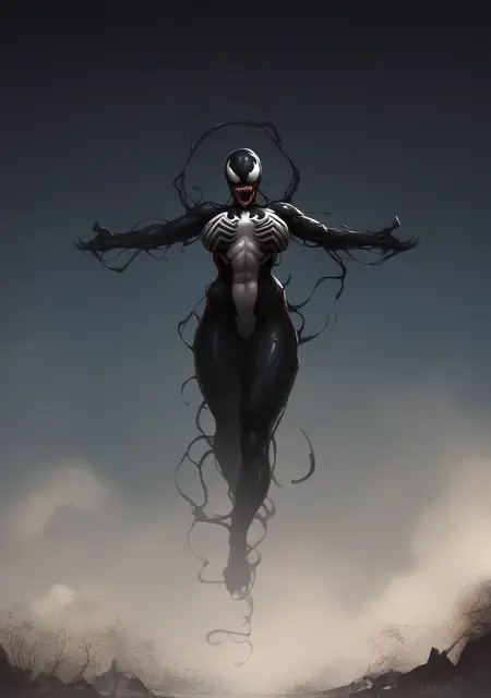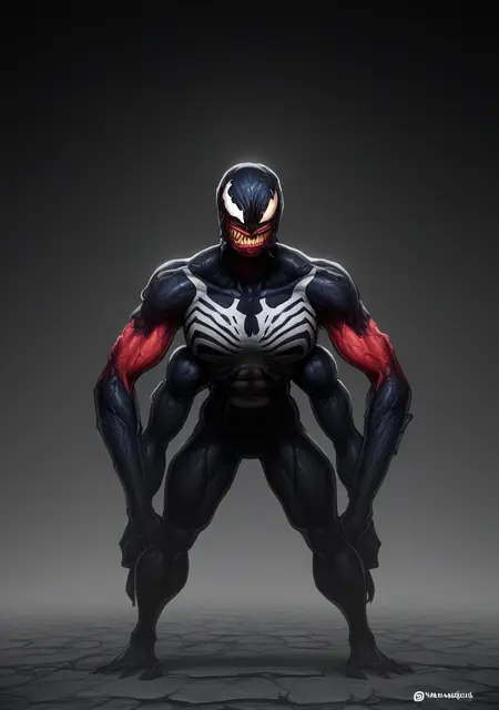 提示词:venom_symbiote、黑色皮肤、触须、粘稠、彩色皮肤,