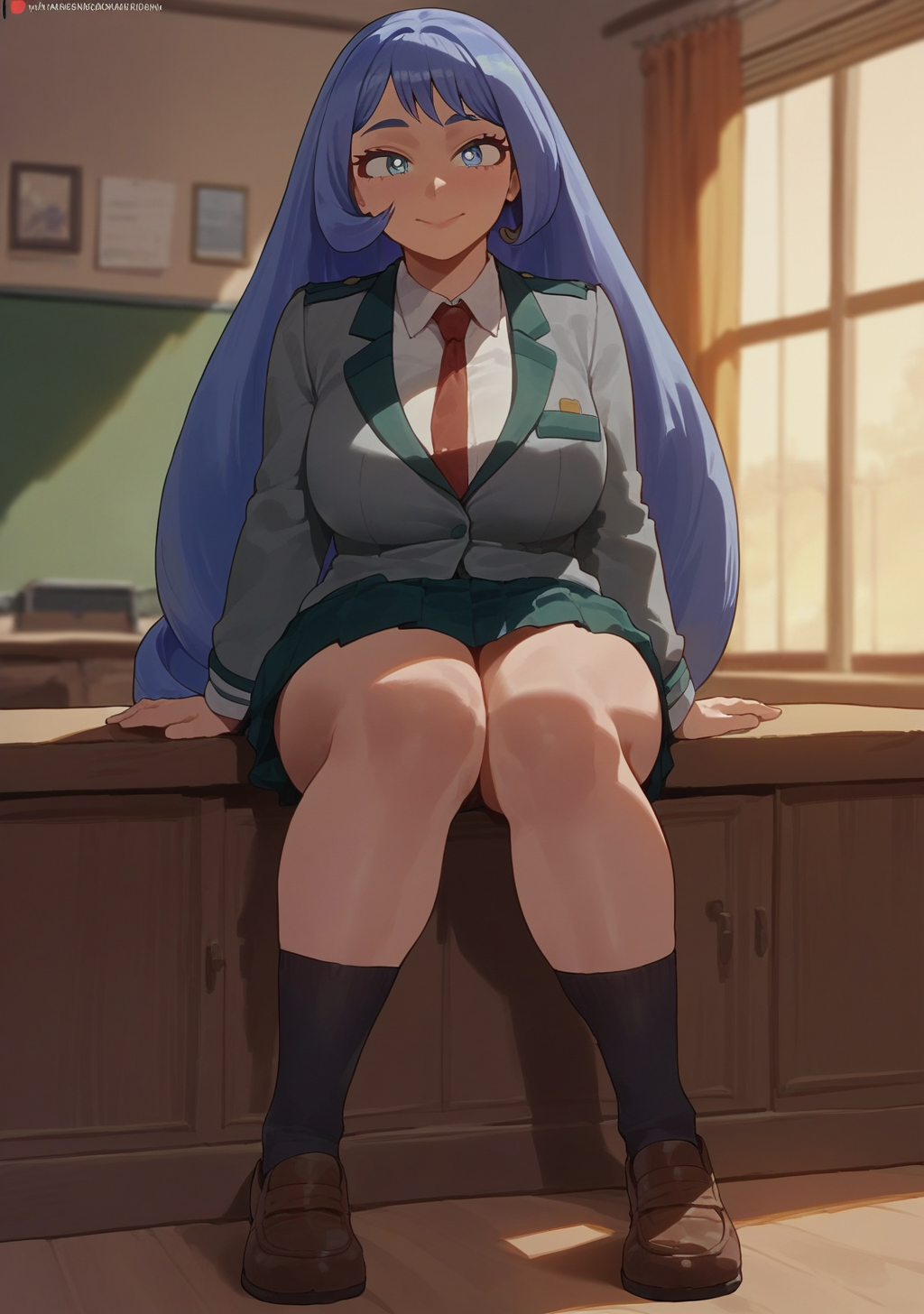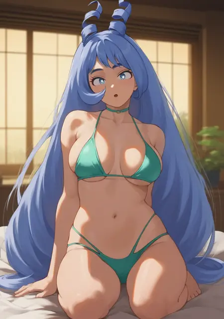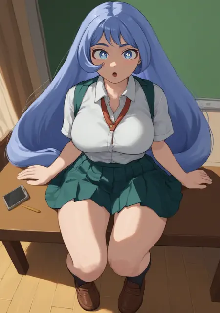 프롬프트: 네지레 하도, 연한 파란 머리카락, 큰 가슴, 파란 눈