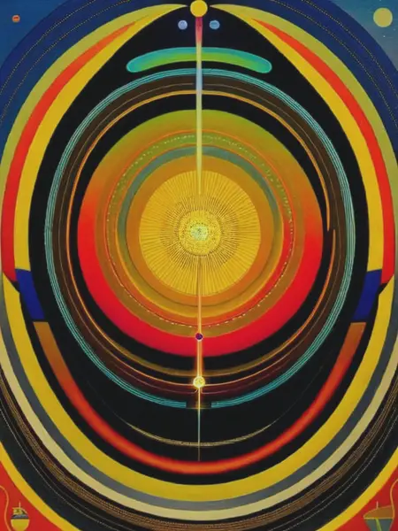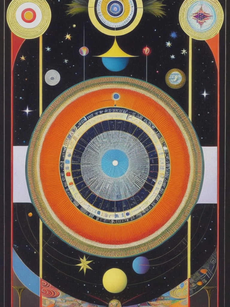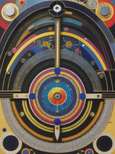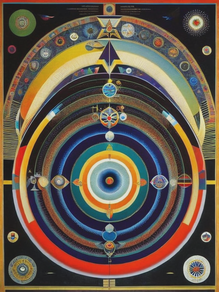 Laffoley's artworks were complex and multidimensional, incorporating intricate diagrams, symbols, and text alongside vibrant and meticulously rendered imagery. His paintings often depicted his visionary experiences, exploring topics such as metaphysics, time travel, cosmology, and the nature of consciousness.