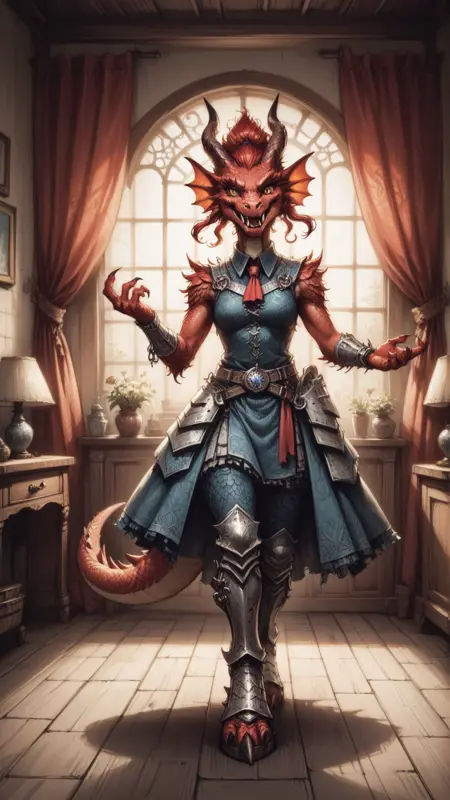character focus, dynamic angle, dynamic {stance|pose}, smiling
