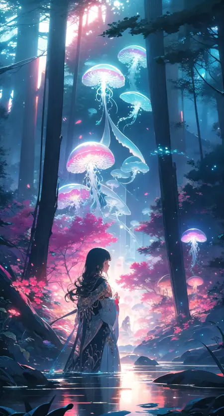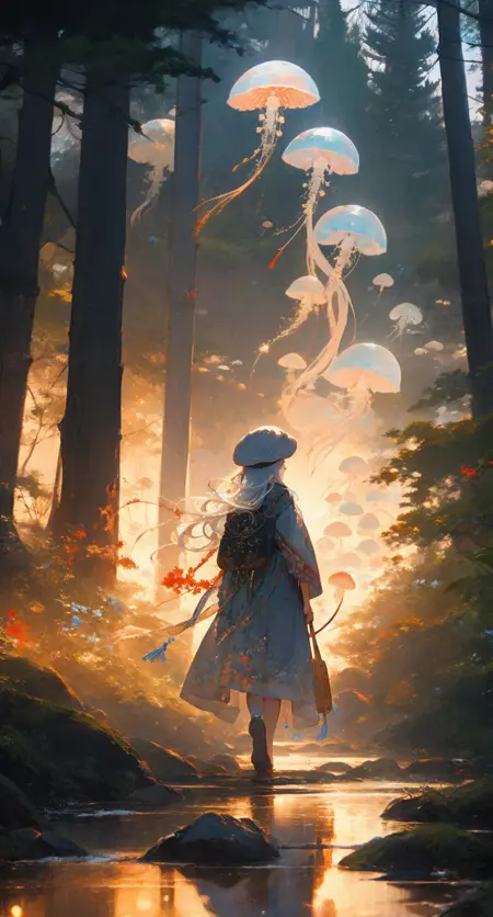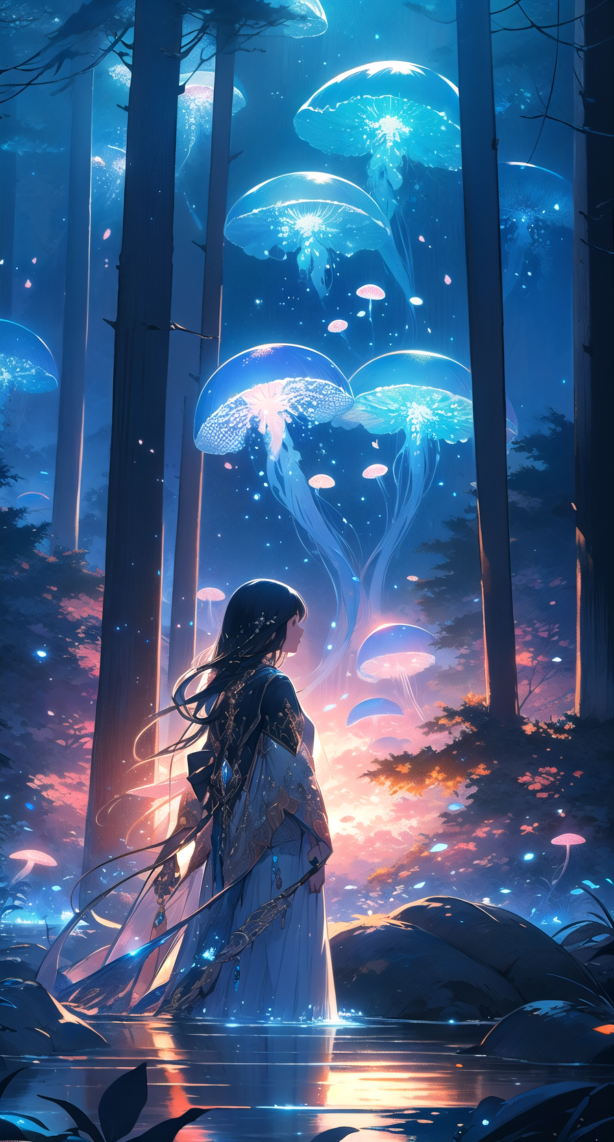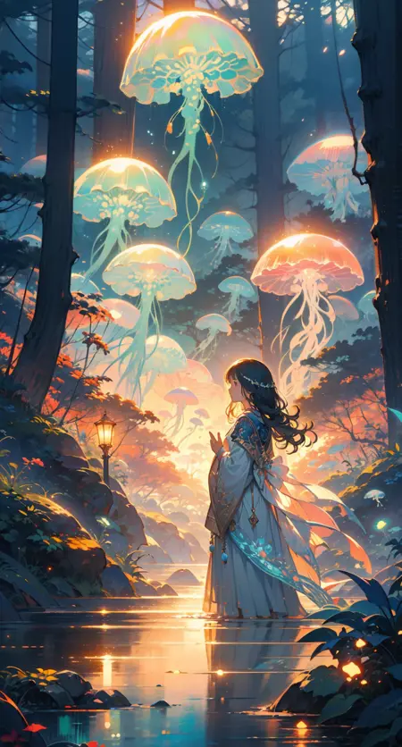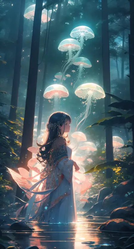 该模型可用于生成漂浮在森林中的发光水母背景,适合描绘一些美丽的场景。
