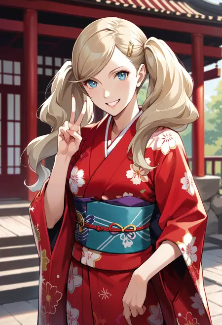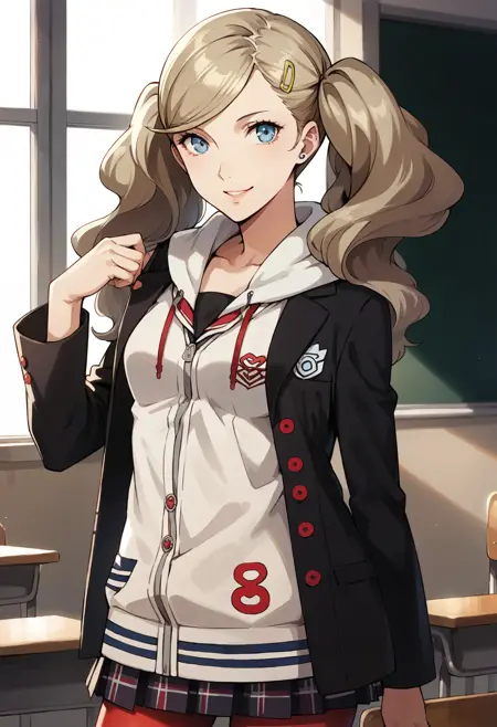 p5ann, takamaki anne, 金色头发, 长发, 双马尾, 刘海垂落, 发夹,