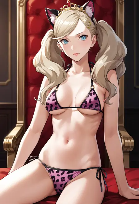 p5ann-cognitive, fake animal ears, cat ears, tiara, pink bikini, leopard print, side-tie bikini bottom