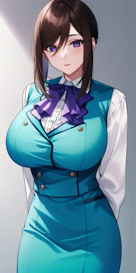 white_collared_shirt_purple_ascot_aqua_pencil_skirt_aqua_vest:これは夏用のバリエーションなのか、それともブレザーの下に着ているのか不明ですが、他の衣装の基本的なバリエーションです。