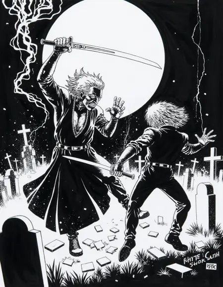 잘 작동하는 다른 토큰: stark black-and-white contrast, bold linework, monochrome